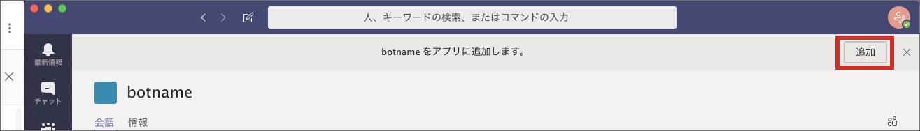 2. ボットとのチャット画面が表示されたら、画面上部の追加ボタンをクリックする。